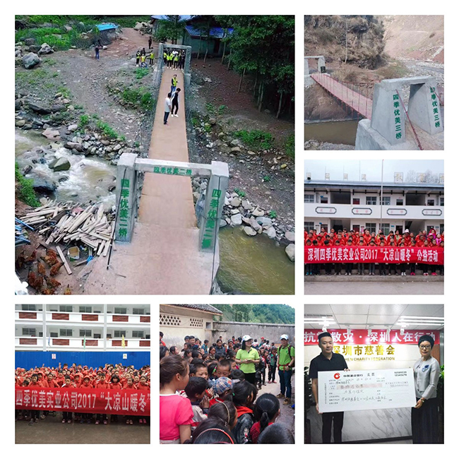 四季優(yōu)美投入27萬元在昭覺縣捐建第四座上學橋——特布洛鄉(xiāng)摩鋪村四季優(yōu)美橋,以解決村里孩子雨季上學難、村民出行難的問題。
