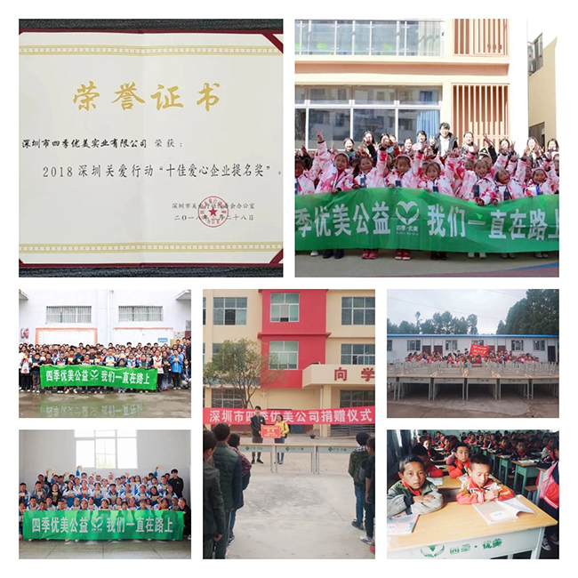 一串串數(shù)據(jù)的背后,是四季優(yōu)美公益行動向深度和廣度蔓延的寫照,也書寫著一個企業(yè)的精神成長史。山長水闊不辭其遠,風摧雨折不改初心,未來,四季優(yōu)美將一如既往,繼續(xù)在公益之路上深耕篤行。