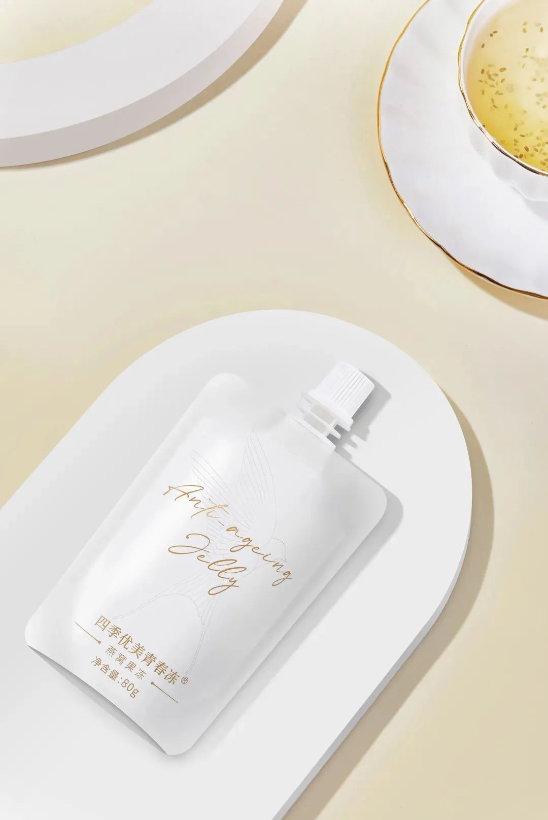 In order to keep the purity of the product quality, the bird’s nest is soaked in high standard purified water in the whole process, to prevent mixing outside impurities in to the greatest extent: by controlling the temperature at 121℃, the essence is activated and its competence is locked at the same time of instant sterilization; Sijiyoumei’s anti-aging jelly uses four-layered composite membrane bag, with its most outside and inside layer using Japanese imported materials, wherein the most outside layer uses high resistance material. All materials reach the food grade safety standard, conducting sterility sealing at the same time of high temperature sterilizing, so as to keep the competence of the material to the greatest extent, and guarantee the stable quality within 12 months’ best edible period.